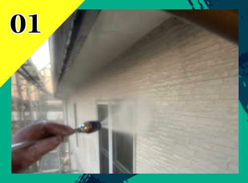 具体的には、まず高圧洗浄で外壁や屋根の汚れ、藻、コケ、カビなどを落とし、下地処理でクラックの補修などを行ったのち、塗料を塗っていきます。