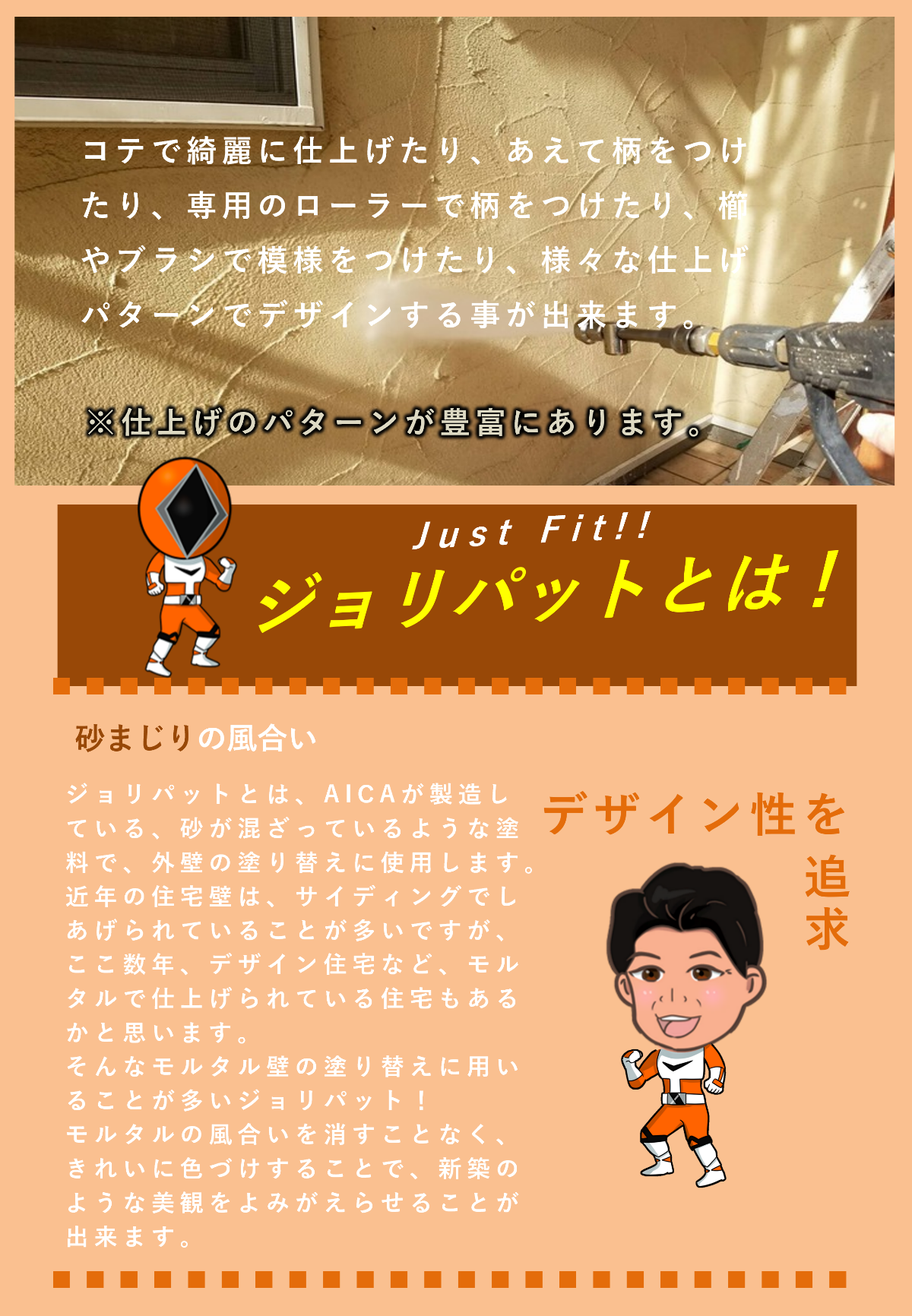 また、ジョリパットは現場で施工要領書に沿って仕上げていく現場施工になるため、オリジナルの仕上げなどアレンジも楽しむことができる。