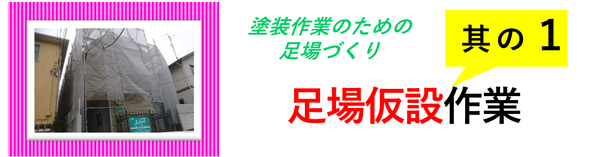 外壁塗装工事や屋根塗装工事で、外壁の塗装作業や、屋根の塗装作業は高所作業となるため、塗装作業を行う建物の周りに足場を設置します。